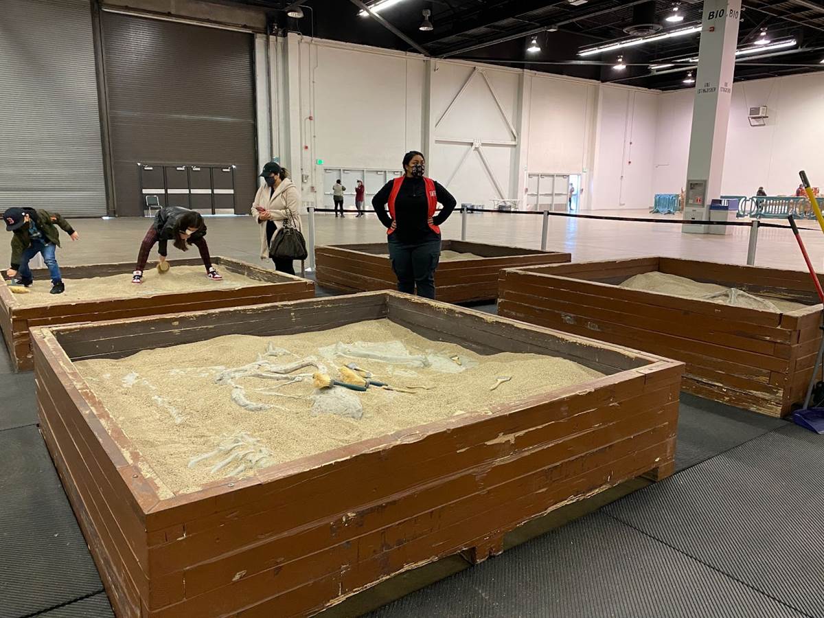 Additional activities are available at the back of the exhibit, including a fossil digging site.