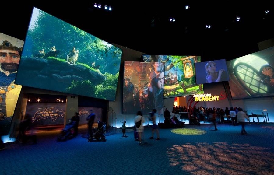 One of the highlights of opening day at DCA was the Disney Animation building, with its incredible 360 degree lobby display. The lobby is still the best part of the experience, however Turtle Talk with Crush and the Animation Academy are both fun diversions. Unfortunately, the Sorcerer’s Workshop walk-through experience is truncated slightly from its original form, with the final Ursula themed room being taken out for the Anna and Elsa meet & greet area. The aforementioned meet & greet has been closed since the parks reopened last year, so that is sadly an underutilized area of the building.