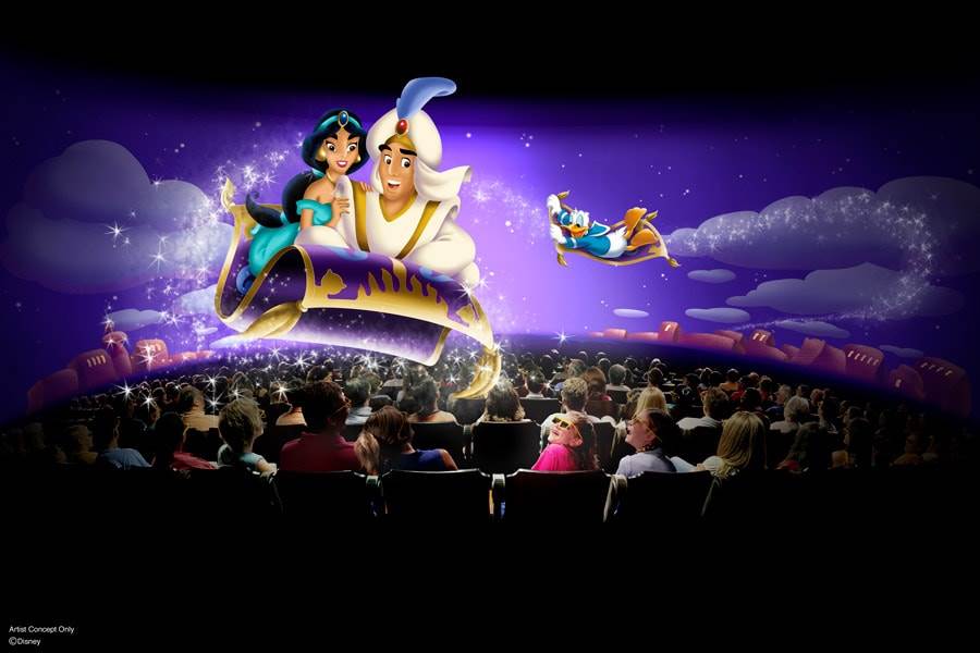 Over 15 years after Mickey’s PhilharMagic opened at the Magic Kingdom, it finally made its Disneyland Resort debut at the Sunset Showcase Theatre in 2019. Due to the smaller screen at this theater, the presentation of most of the show is oddly small, making it pretty hard to see. That is until the special effects on the side walls kick in during The Lion King scene, adding quite a bit to the presentation. Despite this version’s shortcomings, the show itself is still an enjoyable one.