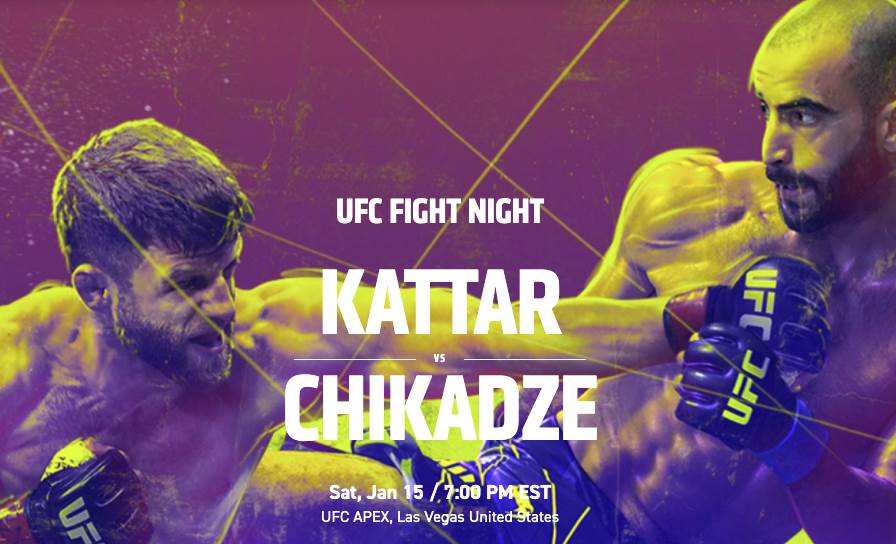 UFC Fight Night: Kattar vs Chikadze will be held Saturday, January 15 at 7 PM ET. Fight fans can watch live on ESPN+.