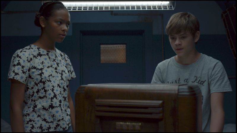 Griffin and Daisy race to the hatch to swap places with Harper in 1930, but the hatch won’t open. Griffin soon discovers that the blue glowing stone is missing from the radio and believes it may have been taken by the ghost that haunts The Tremont. Griffin prepares Daisy to continue playing Harper by giving her modern clothes and a smartphone. On their way back upstairs, she sees her mother’s old mirror in the basement and Griffin tells her its how the ghost communicates with them. Griffin believes the ghost is Daisy’s mother Grace and she asks the mirror where they can find the stone. It fogs up and the word “Home” appears. Griffin thinks it means that Daisy should go look in Harper’s home.