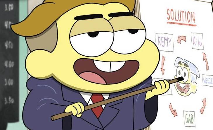 Meanwhile, Cricket feels that since he is the grandson of the key investor behind the cafe, he too should have some kind of boss role in the operation. While Gloria and Gramma seek out Community Sue, he figures out a way to take charge, which he thinks is do nothing at all. He ends up hiring Remy and the rest of his friends, turning the store operation into a disaster with an ever growing pile of pastries and endless cycle of training and problem solving that at one point is literally drawn out as a circle around Cricket so that problems are never solved.