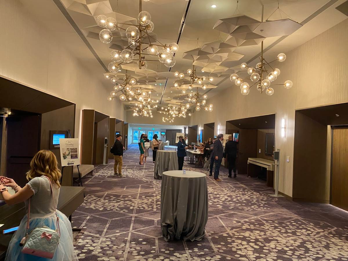While we were there, we got a closer look at the ballrooms all set up for both a wedding ceremony, as well as a wedding reception. The hallway connecting the two spaces was also set up as it would be during a cocktail hour/pre-reception for such an event.