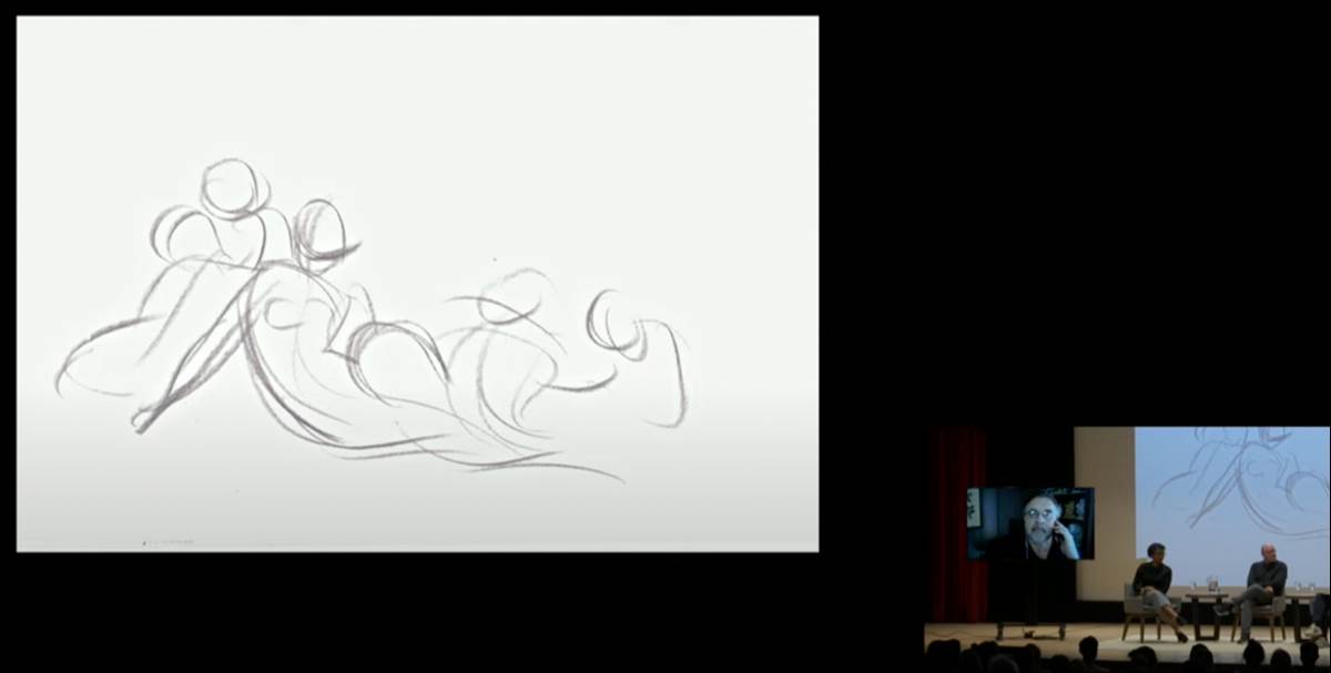 Once Glen Keane and Don Hahn take the stage alongside Burchard and Higginbotham, the talk turns to the production of the film, touching upon production hiccups like the (now more commonplace) story about the far more humanized, less-magic and enchanted furniture original version of the film. Those who aren’t too familiar with the production of the film will delight in these tales, but anybody with any DVD or Blu-Ray copies of the film will recognize most of this content from the bonus features on their discs. We also didn’t get much input from producer Don Hahn as his audio was disconnected for his virtual appearance during most of the panel discussion. The focus was then on Glen Keane and his iconic animated sequence of the transformation of the Beast. The story goes that he only had a week to do it based on the official production schedule, but Hahn knew how important that scene would be and allowed him to take the time he needed to get it done. In fact, the story has been told numerous times before and be found in the video below in a more succinct fashion, sharing the influence that master artists before him had on his work.