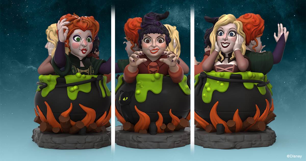 The Sanderson sisters are back to lure you into the depths of their bubbling cauldron which glows in the dark as part of a new vinyl art figure that will transport you to a time of magic.