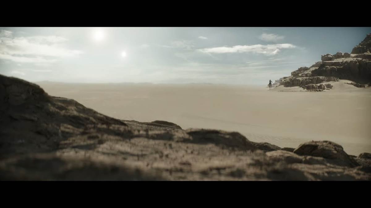 Shot 1: Presumably a Tatooine desert landscape. And I’m assuming that’s the titular Obi-Wan Kenobi riding an Eopie (a beast of burden first seen in Star Wars: Episode I - The Phantom Menace) in the far distance.