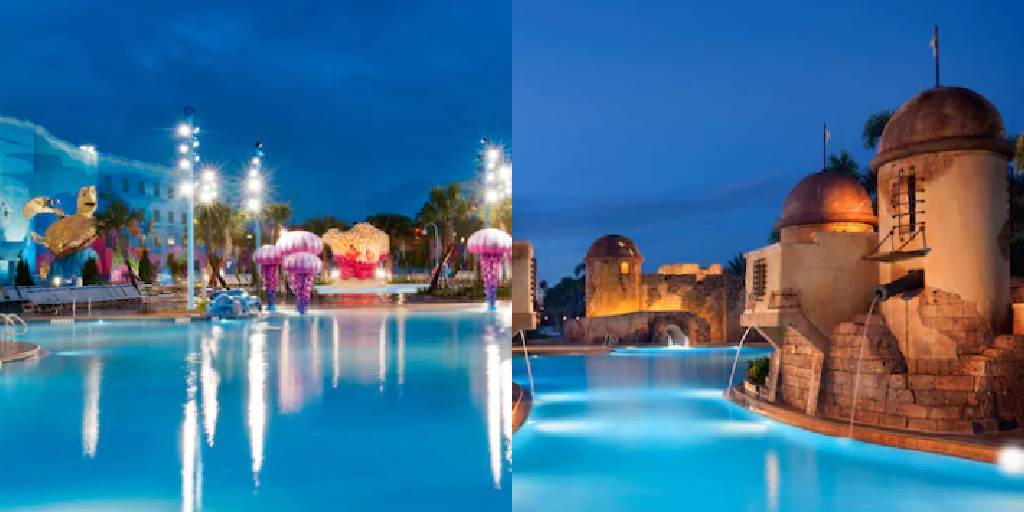 Heading over to the Hollywood Studios region, The second-seeded Art of Animation will take on the third-seeded Caribbean Beach. Both of these have a lot of family appeal, with a couple of really cool pool areas. Art of Animation’s Big Blue Pool is the biggest on property and the four areas of this hotel themed to beloved animated films are all a lot of fun. Caribbean Beach recently underwent a remodel and now boasts a couple of really great eateries in Sebastian’s Bistro and Banana Cabana. Can Caribbean Beach pull the upset? Or will it be Hakuna Matata for Art of Animation?
