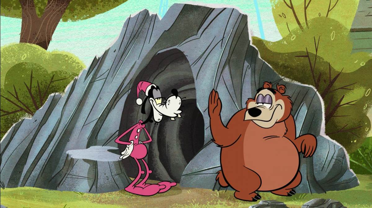 The second short takes place in backyards across Mickey’s neighborhood. All of the hibernating animals wake up from their winter naps, including Chip n’ Dale, plus Humphrey the Bear. It turns out that Goofy hibernates with him in a cave, which is in his backyard. “See you next winter,” Goofy bids Humphrey farewell.