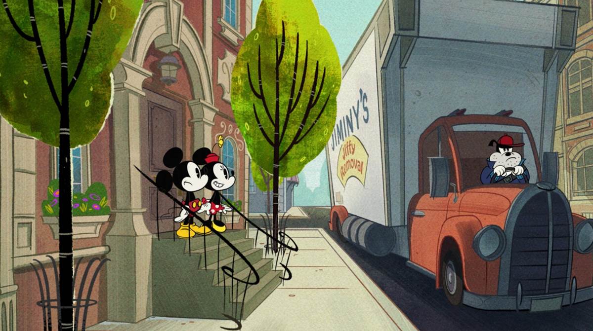 Mickey realizes that he will always have his memories, even though he got rid of some of his stuff. Wishing to pay it forward, he says to Minnie “Let’s do your place next!” Minnie is nervous as we see her building in the distance, stuff spewing from the windows.