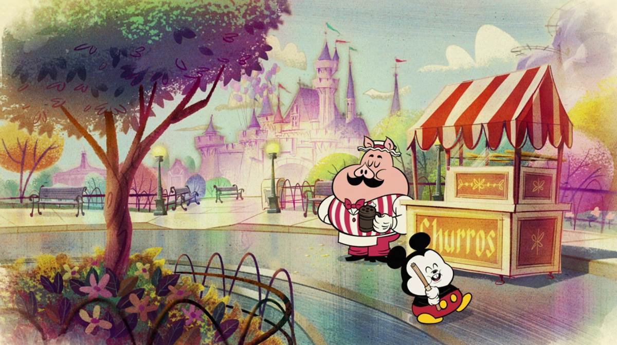 Mickey’s most prized possession is a decaying churro behind glass. He explains to Minnie that it’s the first churro he ever had and in a flashback to a younger Mickey with all of his baby fat, we see him in the hub at Disneyland buying it from a vendor.