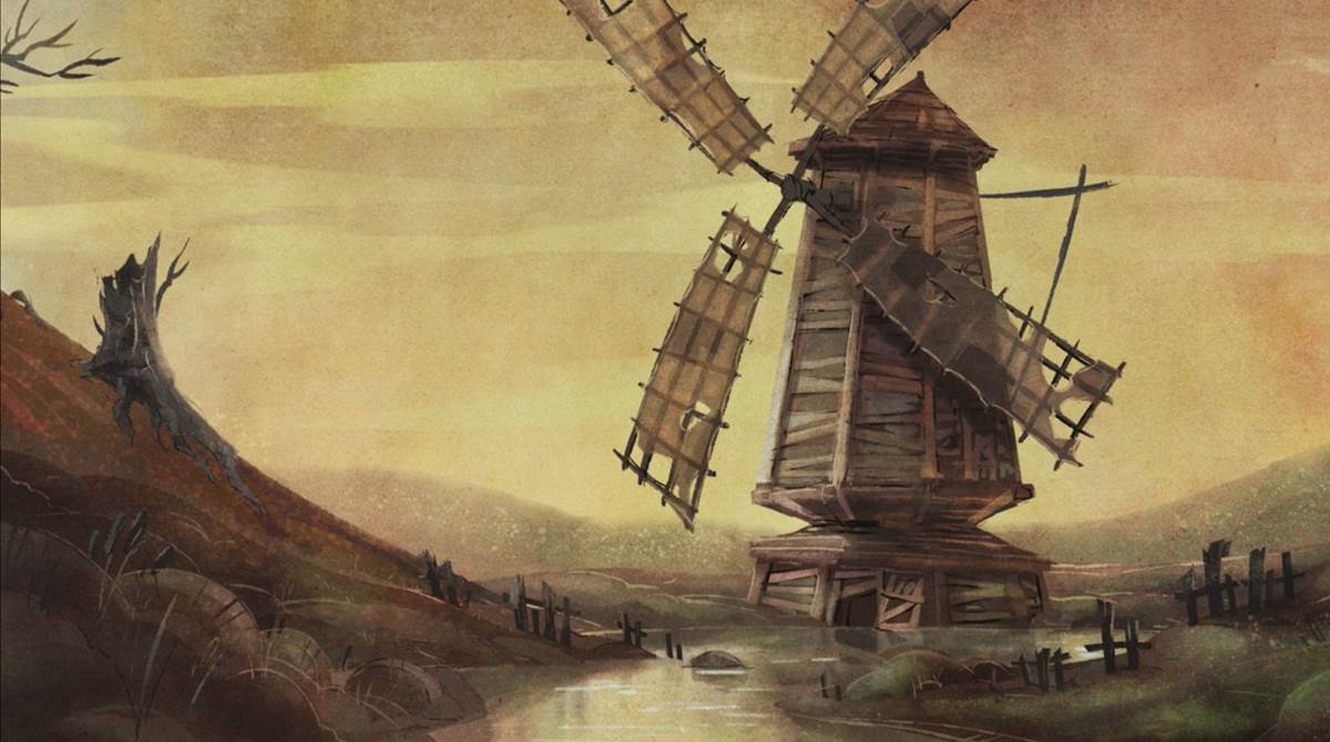 Saddened, Mickey looks up and gets an idea to use the mill to blow the clouds away. They go inside and jump on a gear to get it to move, needing to break a rope that blocks its way first. Once the wheel spins, it blows the clouds away from the sun.
