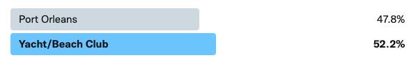 Before we move on to today’s matchup, let’s take a look at our last result. In the final matchup of our first round, Yacht and Beach Club barely edged out Port Orleans, with about 52% of the vote, clinching the last spot in the Elite 8.