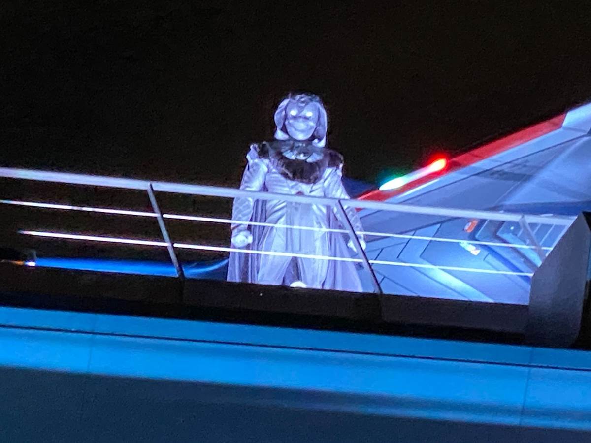 One of the visually exciting aspects of the hero’s costume is his white glowing eyes, which is why the character is currently only dropping by Avengers Campus after the sun has set.