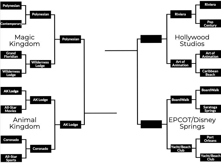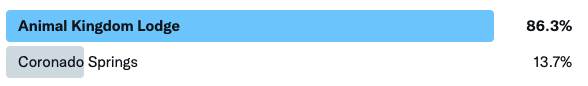 Before we move on to today’s matchup, let’s take a look at our last result. In the most one-sided matchup to this point in the tournament, Animal Kingdom Lodge absolutely dominated Coronado Springs, capturing nearly 87% of the vote. After two very strong wins, Animal Kingdom Lodge may have emerged as a favorite to win this tournament.