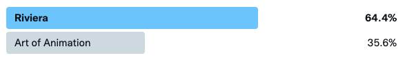 Before we move on to today’s matchup, let’s take a look at our last result. It was a closer matchup than the last one, but the Riviera still managed a very strong win over Art of Animation, taking nearly 65% of the vote and claiming a spot in the Final 4.