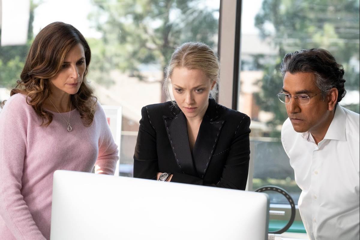 The episode begins as Elizabeth (Amanda Seyfried) and Sunny (Naveen Andrews) are desperately making calls to members of the board of Theranos to try and ensure their continued support. Meanwhile, as things are getting complicated at the company, things are getting equally as dicey in the pair’s relationship. Elizabeth comes home and overhears Sunny talking to a lawyer about his options.
