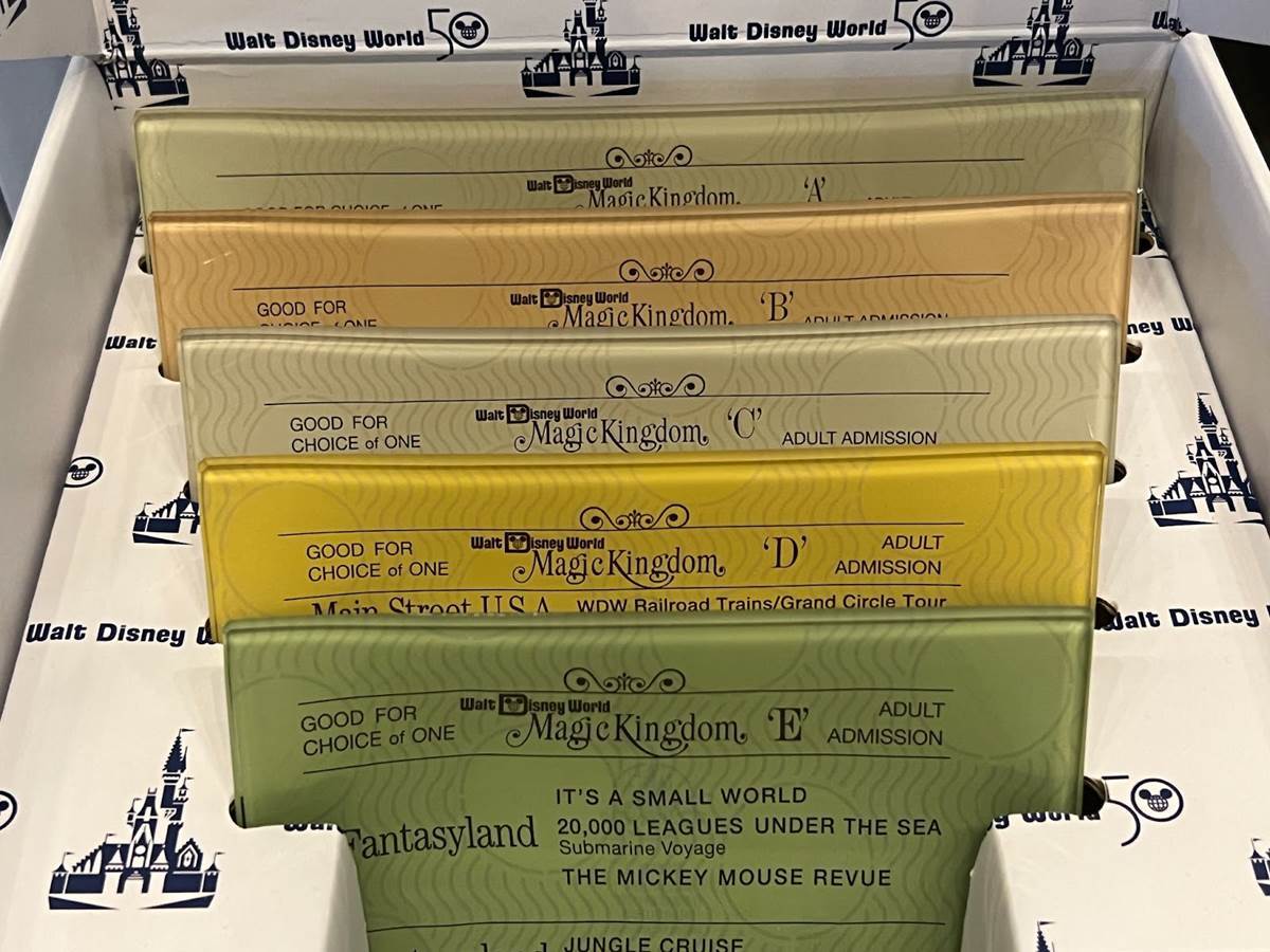 Guests can relive Walt Disney World’s old ticket system days with this new set of coasters from the Walt Disney World Vault Collection, celebrating the 50th anniversary of the resort.