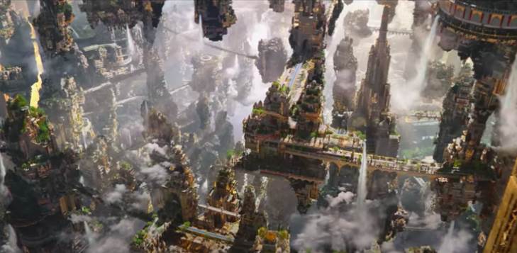 In the next shot, we see a new mythical-looking location. Based on the ensuing shots, this appears to be the MCU’s version of Olympus, home of the Greek gods.