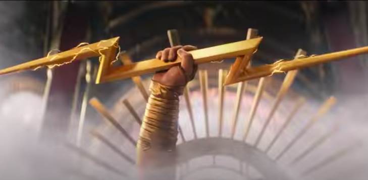 We then see some kind of gigantic, extravagant chamber that looks to be entirely made out of marble and gold. After some magical theatrics, a lightning bolt is caught out of midair by a mysterious hand.