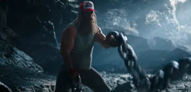 We see the return of Bro Thor, the relatively out of shape version of the character who we saw in Avengers: Endgame. He’s working out with chains while wearing a hat that says “Strongest Avenger,” and the rest of the teaser tells us that this workout eventually helps him to lose the way and get back into his God of Thunder-like shape.