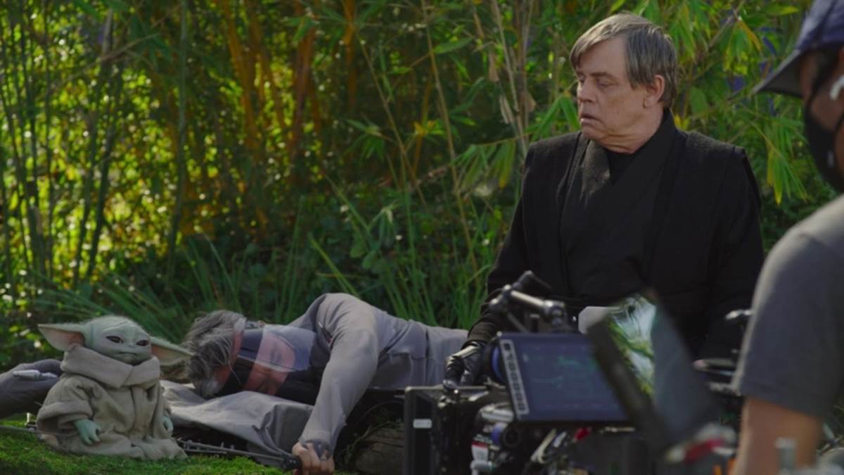 - The next segment is all about Luke Skywalker and Mark Hamill’s experience on set of The Book of Boba Fett. We see Hamill actually acting out the scenes in costume with Grogu.