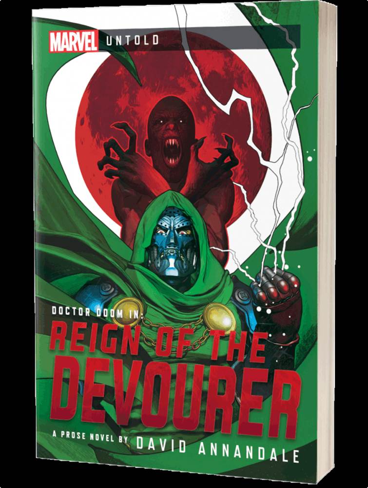 Reign of the Devourer: A Marvel Untold Novel from Aconyte Books and author David Annandale, is a look at a brand new story for the character from a very different angle. He may have always been a villain to us, but as the dictator of a nation, Doom has plenty of people who love him. And with that being the case, he will always be the hero of his own story.
