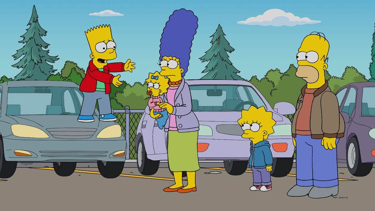 Couch gag: There’s no couch, but the members of the Simpson family are on Mount Rushmore instead of former presidents. Homer notices a tree branch growing out of his nose and Marge tells him not to “pick it,” but he does anyway and it causes his side of the mountain to collapse.