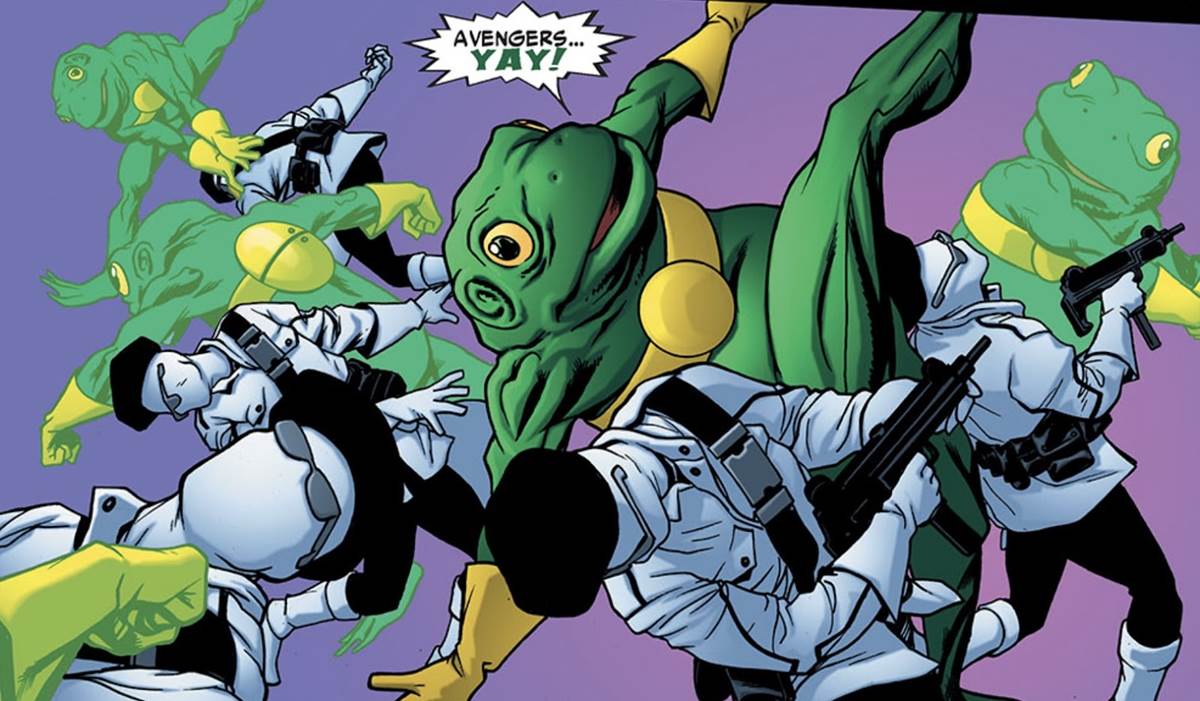Frog-Man was an Avenger… sort of. During a Tony Stark experiment known as the 50 State Initiative, Frog-Man was chosen as one of the heroes assigned to the state of Kentucky.
