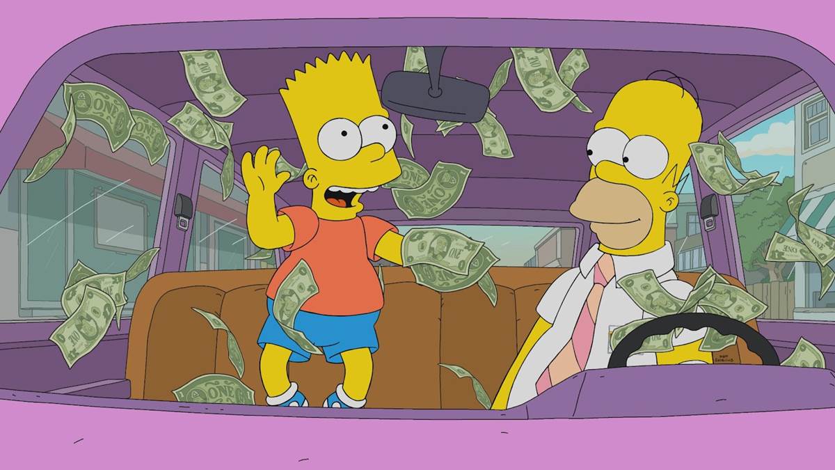 Season 33’s finale, entitled “Poorhouse Rock," begins with Marge having her lady friends over to watch the Simpsons universe’s version of Bridgerton, which of course features enough nudity and sexual hijinks that the rest of the family has to be provided with distractions to keep them out of the room– like a podcast about beer for Homer and a new Harry Potter-esque kid-lit novel for Lisa.