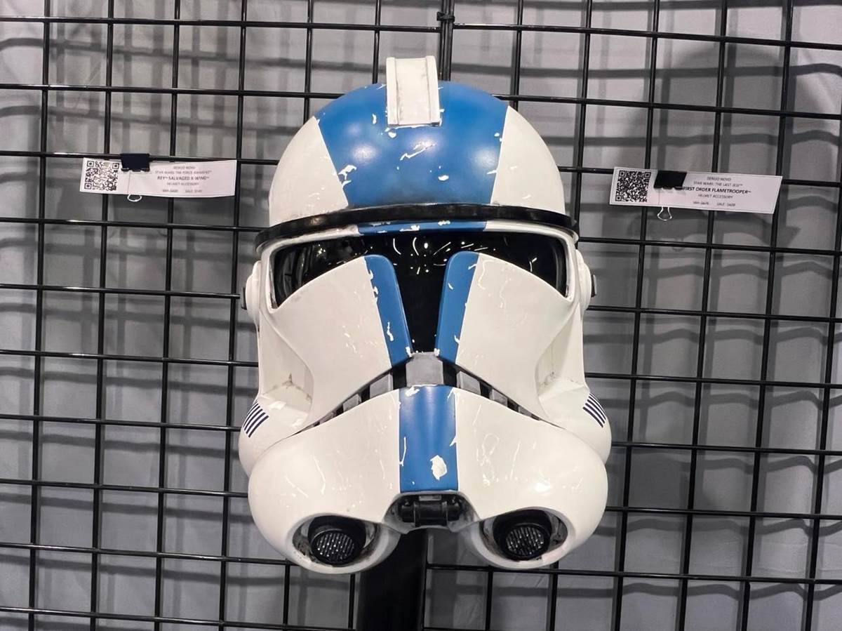 The first item that he shared was the 501st trooper helmet. This is a fiberglass helmet and is modeled off of the Clone Trooper Phase 2 that you would have seen in Revenge of the Sith but with blue markings from the 501st. It's a one-piece helmet, and there is cushioning inside. It's perfect for a display piece but is also wearable. It is available for pre-order right now on their website.