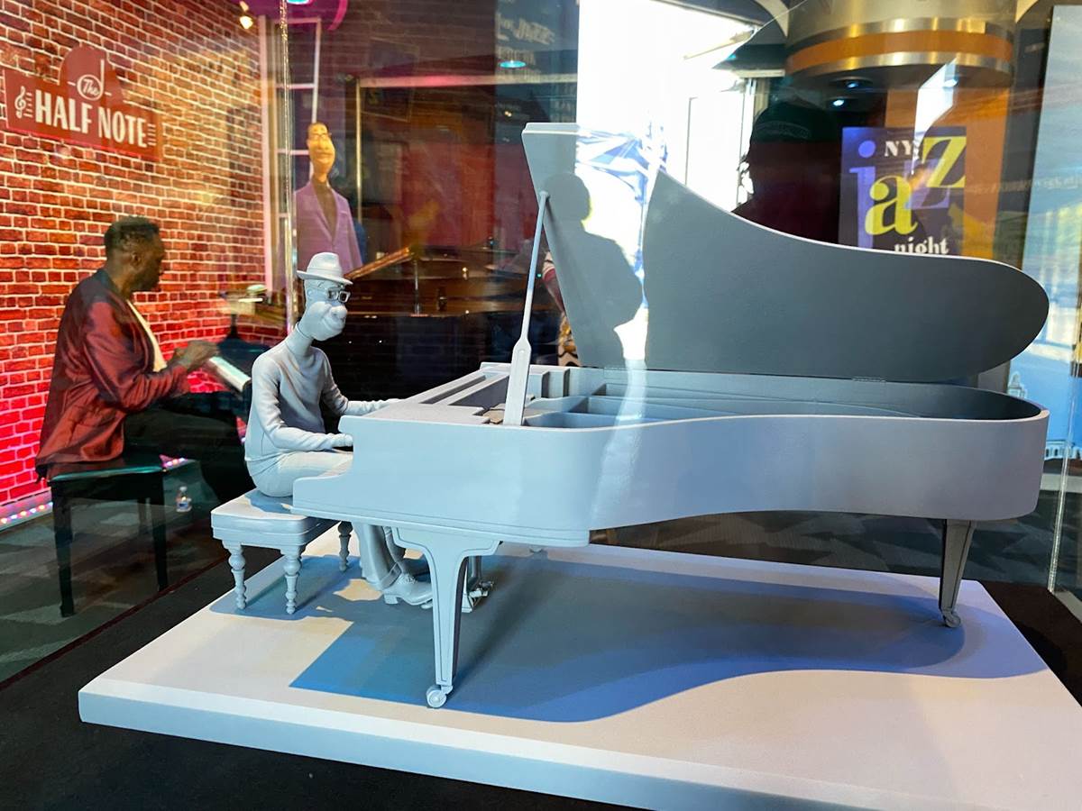 Once inside “The Soul of Jazz: An American Adventure" exhibit, Downtown Disney guests will find drawings from the development of Pixar’s animated feature Soul, a display of instruments used in jazz music, artifacts like tickets and photos related to the history of jazz at Disneyland, and informational placards detailing the evolution of jazz in cities like New Orleans, Chicago, and New York. Disney describes the exhibit as “a tribute to a musical art form that was originated by African Americans, [illustrating] the many different cultures and creators who influenced this evolving genre. Walt Disney Imagineering partnered with cultural institutions and subject matter experts to bring this story to life."