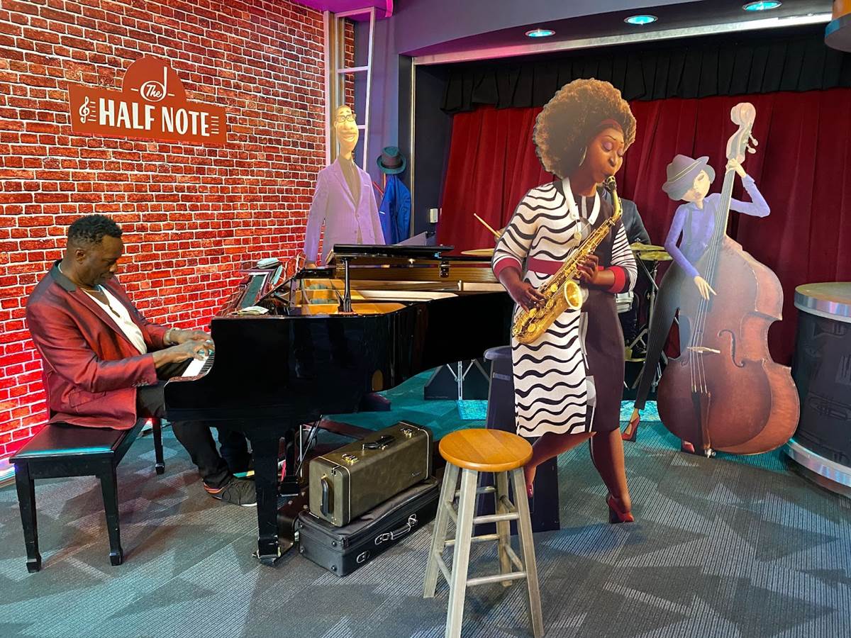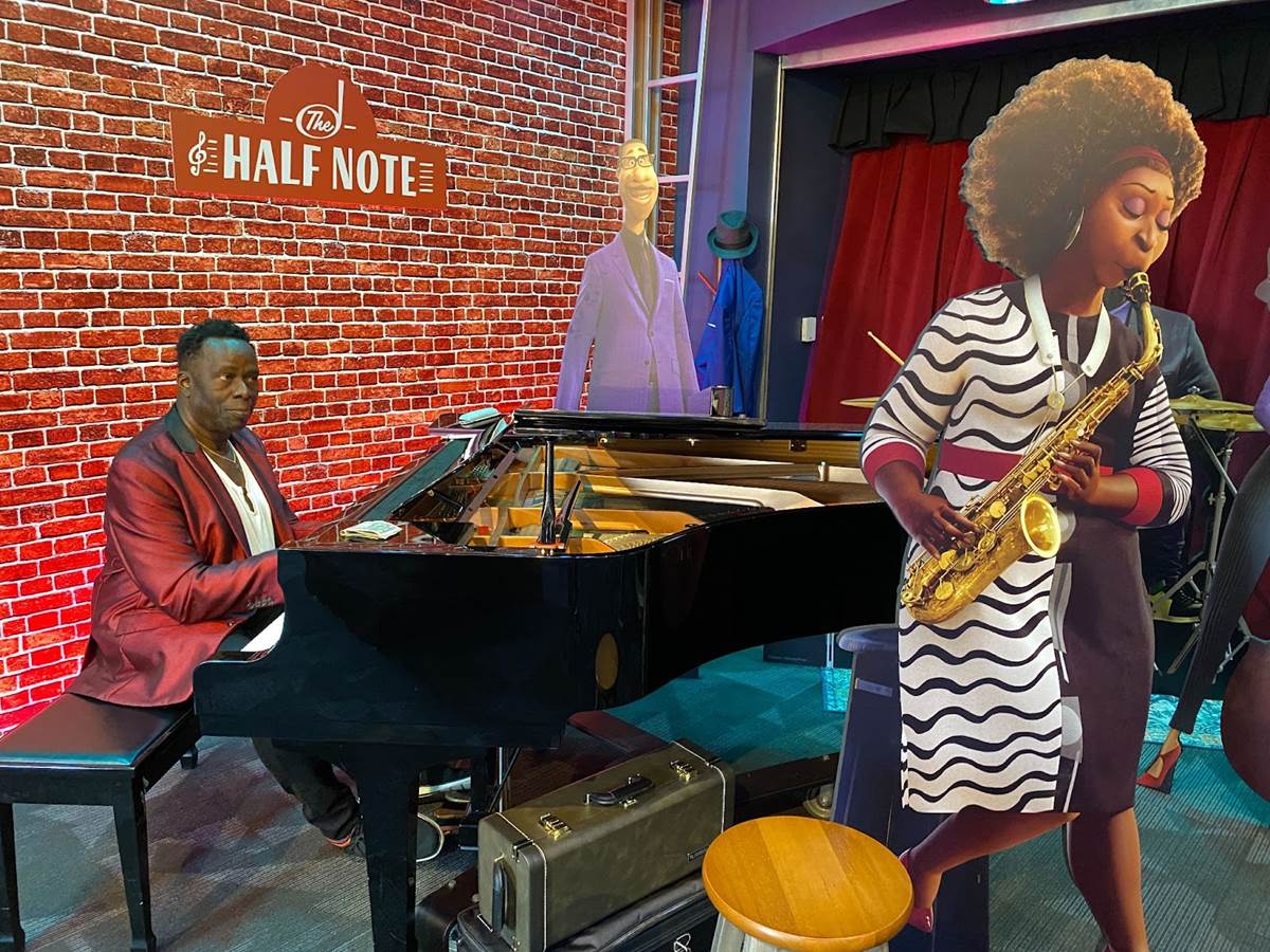 Once inside “The Soul of Jazz: An American Adventure" exhibit, Downtown Disney guests will find drawings from the development of Pixar’s animated feature Soul, a display of instruments used in jazz music, artifacts like tickets and photos related to the history of jazz at Disneyland, and informational placards detailing the evolution of jazz in cities like New Orleans, Chicago, and New York. Disney describes the exhibit as “a tribute to a musical art form that was originated by African Americans, [illustrating] the many different cultures and creators who influenced this evolving genre. Walt Disney Imagineering partnered with cultural institutions and subject matter experts to bring this story to life."