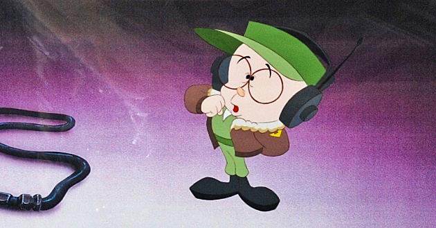 Animators Nik Ranieri, Tom Sito, Pete Docter and others all worked on the preshow under Kirk and Gary and together with the main show under Jerry Rees, got everything done to see the attraction open in time in October of 1989. The attraction, set up by the brilliantly animated pre-show, tells the story of Buzzy, an upstart Cranium Commando who is set to pilot the brain of a 12-year old boy and navigate him through a day at a school that includes the stresses of class, bullies, and meeting a girl he likes. Though the animated characters in the main show were dropped in favor of popular actors and comedians of the era (Charles Grodin, Jon Lovitz, Dana Carvey, Kevin Nealon, etc) that pre-show is fully animated with cut outs and traditional hand-drawn animation.
