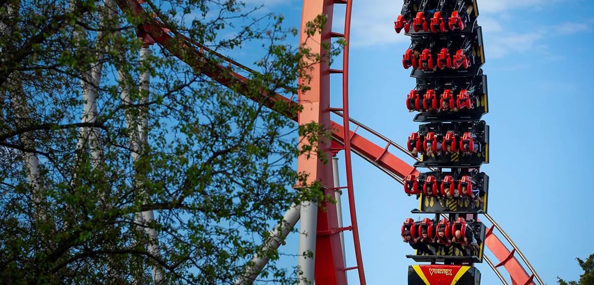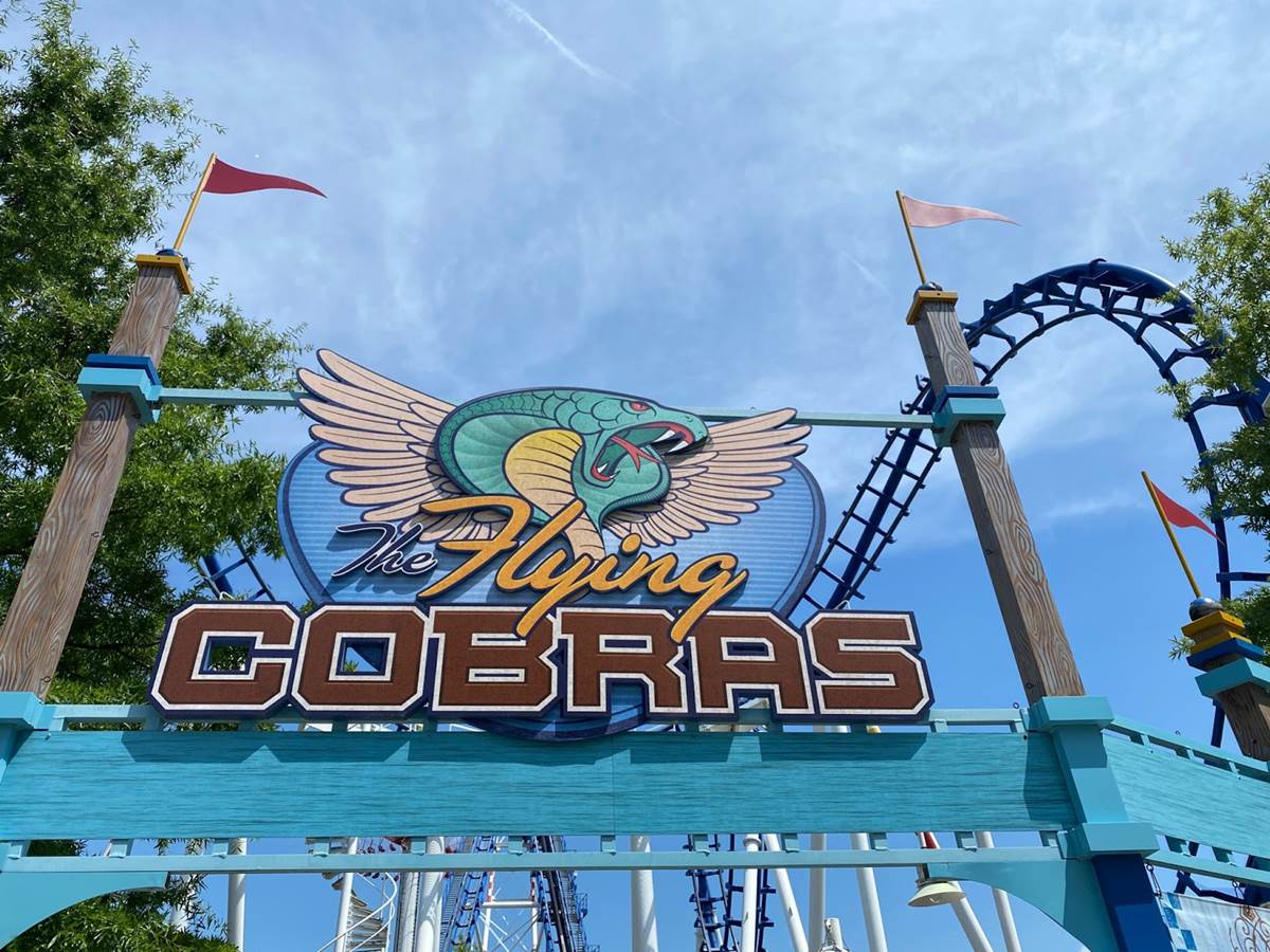 The Flying Cobras is the park’s Vekoma Boomerang, a common roller coaster type in amusement parks all over the world. It sends you forwards through three inversions and then does it all again backwards. This type of ride is known for being rather rough and causing some head-banging. Fortunately, The Flying Cobras features new vest restraints that eliminate the head-banging. They do create another problem though, and that is tightness. If you can forgive that, then this is a marginally improved experience. I also appreciate the aviation theme to the ride, which continues through to the different colored cars on the coaster train.