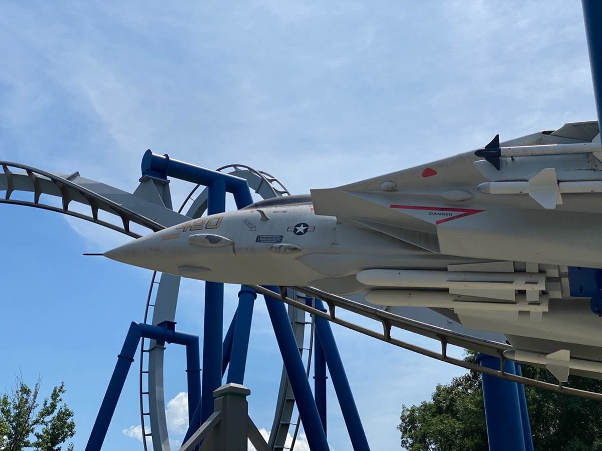 Originally opening as Top Gun: The Jet Coaster, the renamed Afterburn still contains the fighter jet theming of the aforementioned movie. This is another coaster from B&M, their inverted model, and this may be one of my favorites. Similar to my favorite invert, Montu at Busch Gardens Tampa Bay, a lot of the drops and inversions are built into trenches, providing a really good, low to the ground thrill. On that note, a lot of the inversions are really whippy, especially if you’re in the back. So you really get pulled into them. The ride also travels over the pathways providing great views for those on and off the ride.