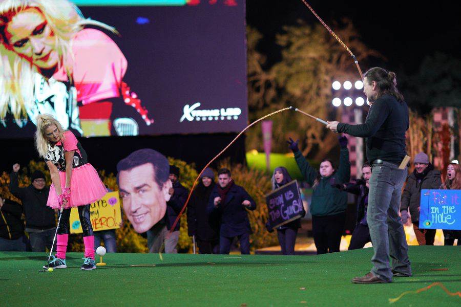 It’s time for another edition of Holey Moley: Fore-Ever! And as usual, we begin with a recap of the events from some of the previous episodes, but mainly the loose Muppet-based storyline as part of Rob Riggle’s attempts to save the show. However, we see a plethora of Miss Piggy in the recap but don’t get too excited since she does not appear at all tonight, as was implied. But remember, Stephen Curry is still being held hostage by Pepe the King Prawn, and Kermit is holding auditions to replace Joe Tessitore on behalf of Rob. Phew. Now that that’s over, lets get back to some extreme mini-golf.