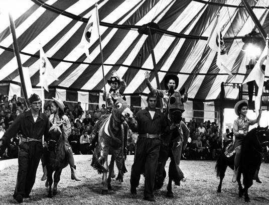 Yes. With menagerie animals and everything else, high wire acts, plus you had the Mouseketeers doing acrobatic acts and animal acts and clown acts, mixed in with these professional circus performers. And then the whole finale of the thing was Santa Claus coming in on his sleigh, and a giant white Christmas tree rising up out of the center of the big top, with a star at the top, playing Jingle Bells, and everybody walking around the big top singing and playing instruments. It was very spectacular, and so that was the first Disneyland in 1955. That was the first Christmas. Well, of course the circus didn't last that long. It was only around for that year, and a few pieces of it lasted longer, but they decided that people wanted to come to Disneyland to go to Disneyland and ride the attractions and things like that, and so the circus went away pretty quickly.