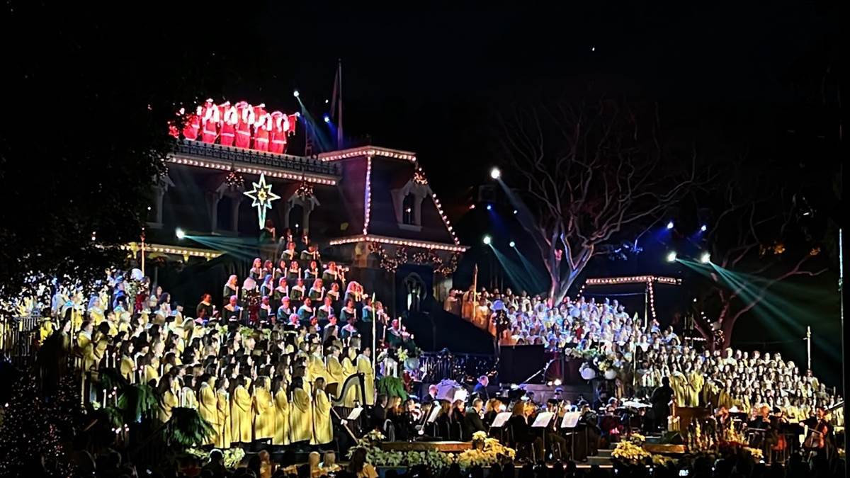 These choirs would perform various days, but one day they decided, in 1956, to bring all these choirs together and sing on the steps of the Main Street Train Station, and so that was the very genesis of Candlelight. And of course, Candlelight is our longest tradition at the parks. It's something that we still do, and it started out as this little group of singers, with the band playing, and a few Dickens carolers on the train steps, and now, today, it's this magnificent concert.