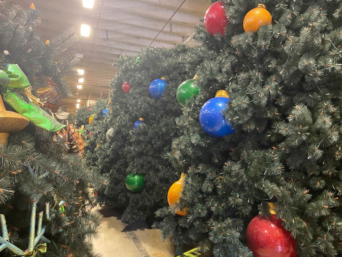 Since 1996, this building has been the central hub for holiday decor at the Walt Disney World Resort. Before that? It was a food processing facility that now plays host to faux glittery ice and snow instead of frozen edible delights. Throughout the building, which felt very much like a Costco or IKEA, yet somehow more organized, you’ll find aisle after aisle of ornaments, ribbon, garland, and a full section they lovingly refer to as the “artificial forest."