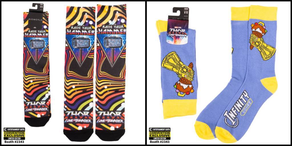 Convention Season is here and like many companies, Entertainment Earth will be introducing new exclusives that will debut first at San Diego Comic-Con. Laughing Place is delighted to bring you an exciting reveal of Thor: Love and Thunder inspired socks that will make you feel like an Asgardian!