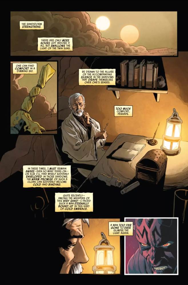 It’s strange that the entire run of the TV show has gone by in-between the first two installments of the comic, but fans of the character will be glad to have further adventures with Obi-Wan coming over the next few months. Star Wars: Obi-Wan #2 begins once more in the “present" on Tatooine (set just before the events of Star Wars: Episode IV - A New Hope), as Old Ben Kenobi awaits a sandstorm in his home in the Jundland Wastes.