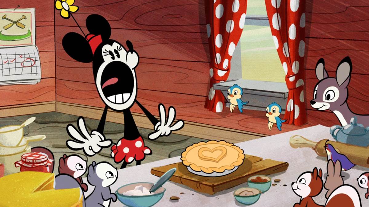 Minnie is tired during the 2:00 am group call, but agrees to bring everything they need, telling everyone to just show up on time. Off the call, she decides to bring double of everything to avoid any mishaps. We see her baking pies with some help from Snow White’s forest friends (for sanitary reasons, Minnie is unhappy about it).