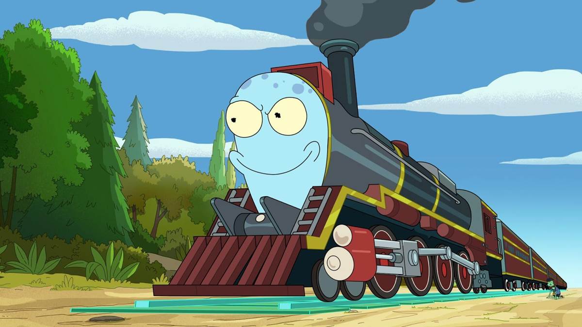 The third season of Solar Opposites drops a few more episodes than the previous two rounds, with new adventures including a search around the Earth for the family’s lost limbs (apparently abandoned in various locations via a series of mishaps), a competition between adult characters Korvo (voiced by Roiland) and Terry (Thomas Middeditch) to see which can best master the hobby of model train collecting, and an entire “bottle" episode spent waiting in line for sneakers– yes, you read that right. The unifying theme of this batch of installments concerns Korvo attempting to enjoy his life on Earth more, rather than fixating on “the mission" and repairing the aliens’ crashed spaceship. This leads to the family taking a day trip to “Hululand"– which they vow won’t be anything like when the Simpsons visited Itchy & Scratchy Land– and experiencing attractions based on other original series like 11.22.63, The Looming Tower, and the Stephen King-inspired Castle Rock. That’s the kind of playfully referential humor Solar Opposites has become known for, and fortunately it remains just as entertaining as ever in this go-round.