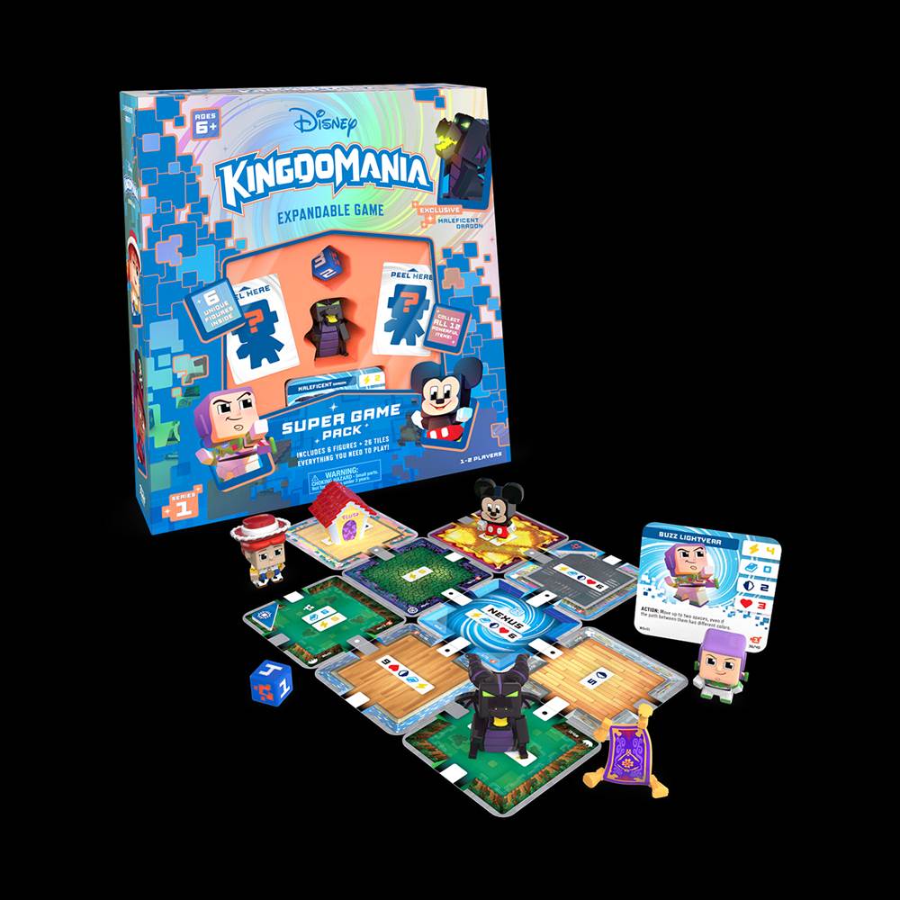 For $22.99, the “Super Game Pack" contains the exclusive Maleficent Dragon figure plus three mystery characters. Each figure includes a character tile and this playset also comes with two mystery items. 20 level tiles, 4 glitch tokens, 4 patch tokens, and a die help players get well on their way to having fun in Disney Kingdomania. And with so much packed in this set, this option is perfect for up to 2 players.