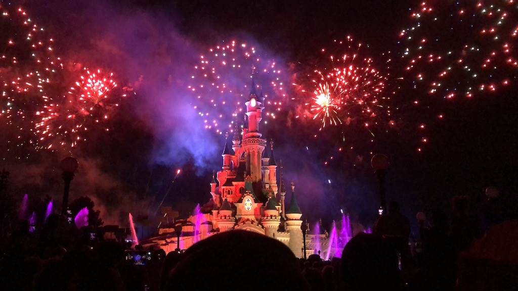 Considering this was a fireworks show, there weren’t any castle projections, but lighting effects and water fountains were used on cue to enhance the presentation. One of the best moments was when a Ratatouille medley was playing and the drones recreated the Eiffel Tower right next to the castle. Two Parisian icons next to each other set to a lovely Parisian score? Who could ask for anything more?
