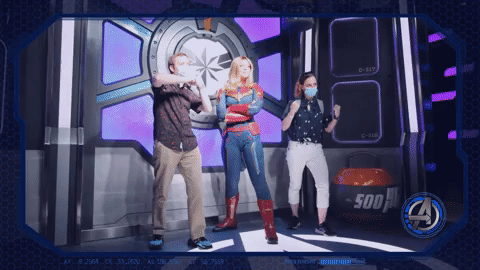 Just like regular meet and greets, you’ll be able to snap a few shots with the character. However, one new option that’s premiering with Avengers Campus Paris is a freeze frame effect, accomplished by setting off more than two dozen cameras in very quick succession. You can see the results in the GIF below.