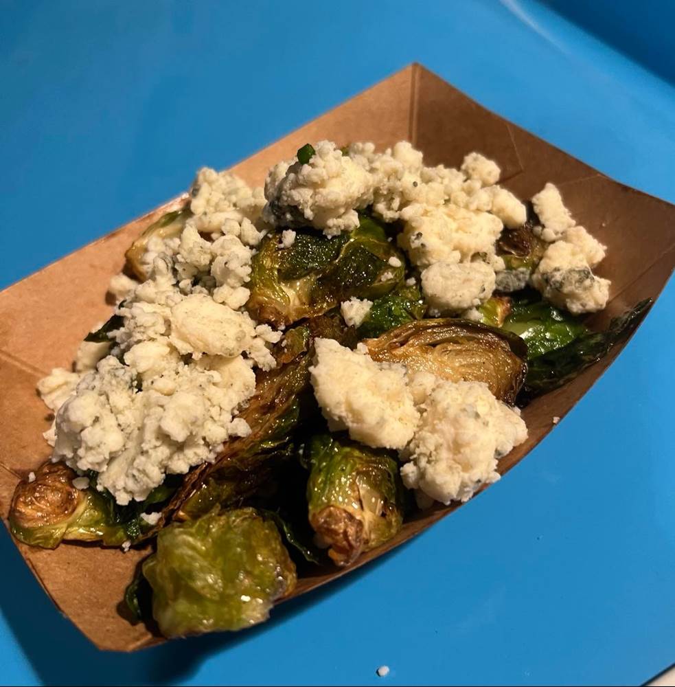 - Crispy Brussels Sprouts with Buffalo sauce and plant-based Blue Cheese $5