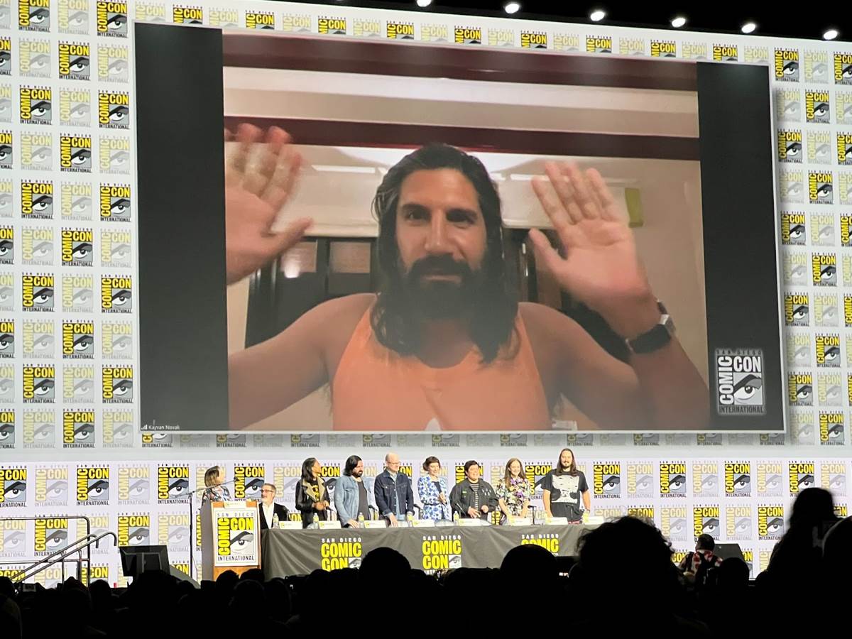 What We Do in the Shadows fans not only got to step inside Nadja’s Nightclub at San Diego Comic-Con, but they were also the first audience in the world to see “The Night Market," the fourth episode of Season 4, which aired on July 26th. During a panel on Sunday, July 24th, the full episode was screened in the historic Hall H, followed by a panel discussion and Q&A. In attendance were Matt Berry (Laszlo), Harvey Guillén (Guillermo), Mark Proksch (Colin Robinson), Kristen Schaal (The Guide), Paul Simms (executive producer/writer), Stefani Robinson (executive producer/writer), Yana Gorskaya (co-EP/director/editor), and Kyle Newacheck (co-EP/director). Joining via Zoom were Kayvan Novak (Nandor) and Natasia Demetriou (Nadja).