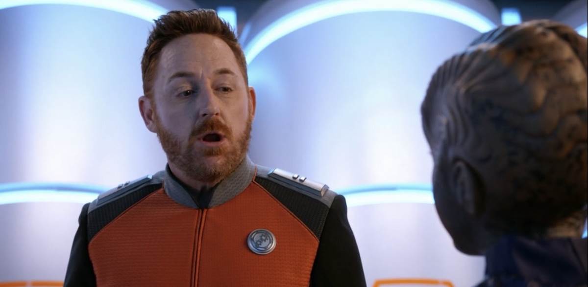 Our episode opens with Kelly sitting in the mess hall waiting for Bortus. He has been having some issues with Topa. He thinks she has a crush but she won’t talk to Bortus and locks herself in her room. Kelly just says she’s being a teenager. Bortus enlists Kelly with talking with Topa, as Topa looks up to her. When Kelly talks with Topa she asks how to know if someone likes you. Kelly tells Topa to just tell him how she feels. We then see LaMarr and Gordon in engineering and Topa walks in. She asks Gordon if he would come to dinner. It’s now clear that Topa has a crush on Gordon, he dismisses it and tells her he thinks of her as a friend.