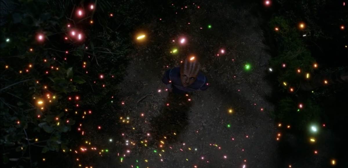Later that night at a ceremony, the female Moclans are dancing to a version of “Jolene" this scene is interesting because there seems to be some chemistry between Bortus and Kelly. Topa goes over to a swarm of Lumanites where she is met by Haveena. Haveena gives Topa a necklace and asks her to keep a secret. She asks Topa to use the Orville to communicate with Moclas so that they can continue to smuggle more female infants off the planet. A huge task to be placed on the shoulders of a teenager. As Haveena leaves a blue Lumanite appears and Topa follows it deep into the jungle. Suddenly she hears something. After some looking around someone grabs her. It’s one of the other Moclan who was surveying the sanctuary. They take her to their ship and leave the planet. After a few Bortus starts looking for Topa. No one has seen her. Eventually, they find the necklace that Haveena gave her. They ask Haveena but she only tells them that they talked and then Haveena left her. They return to the shuttle only to find that it’s been tampered with they eventually make it off the planet and follow the ion trail from the Moclan ship.